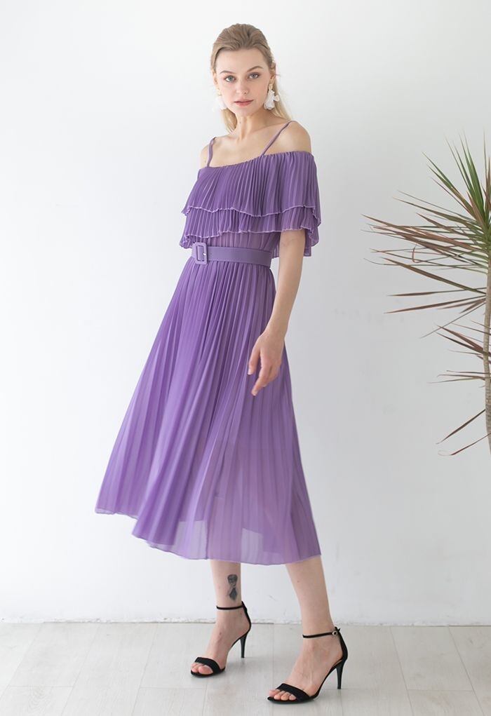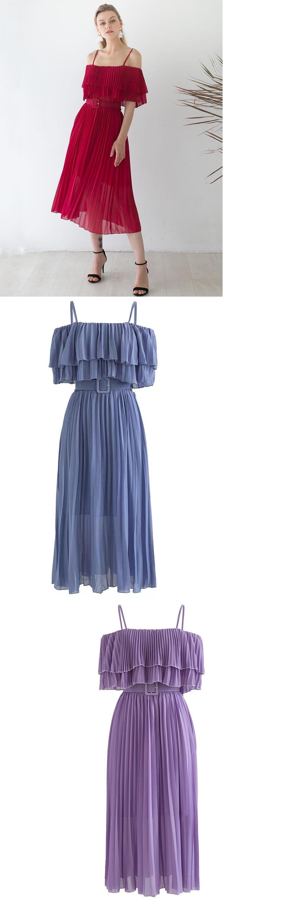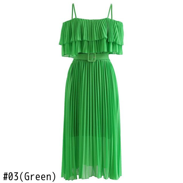 Pinkoz 女性フリル グリーン プリーツ スラッシュ ネック夏パーティー ミディ ドレス ベルト付きエレガントなパーティー休日 vestidos デ mujer traf ピンク ラッフル サマー 夏物 ハーネス