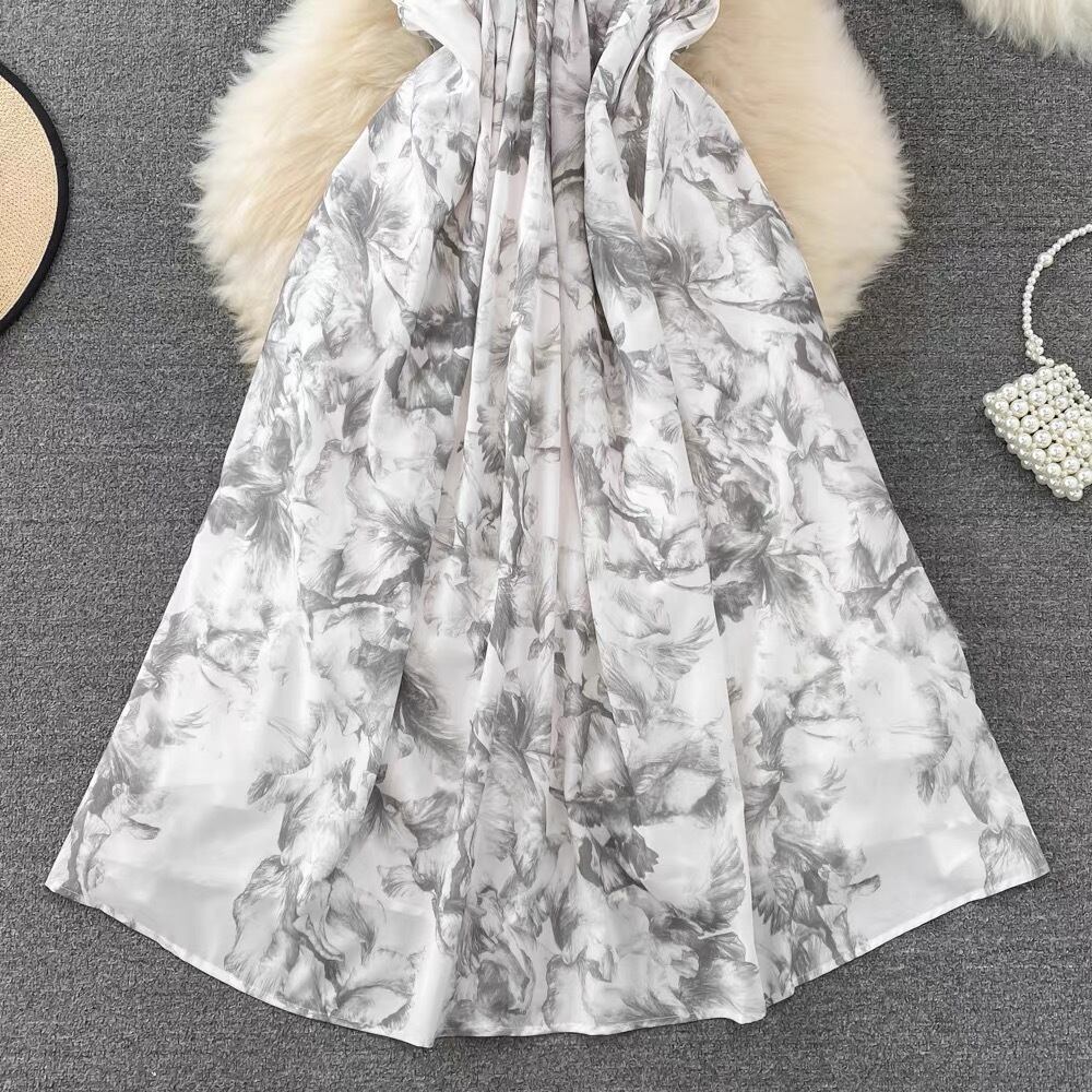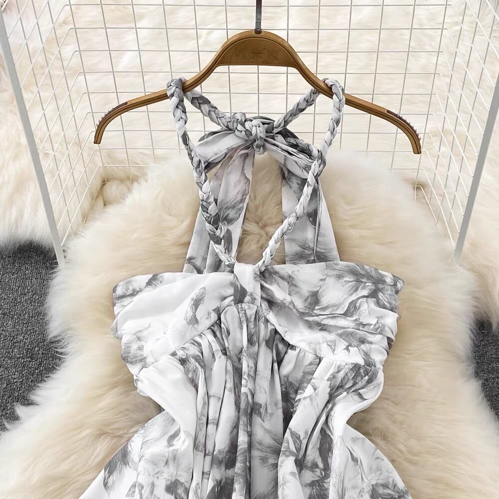 Pinkoz 女性デザイナー グレー花柄プリント ホルター夏 A ライン ドレス ホリデー パーティー ナイト キャミソール ローブ デ mujer vestidos traf za ピンク サマー 夏物 Aライン