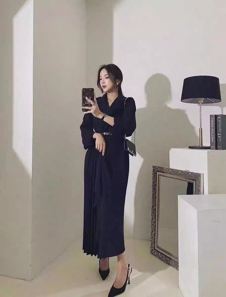 Pinkoz 滑走路新ファッション ベージュ ノッチド ネック春秋非対称フリル ミディ ドレス ルーズ vestidos ベルト za ピンク ラッフル スプリング 春物 オータム 秋物 ハーネス