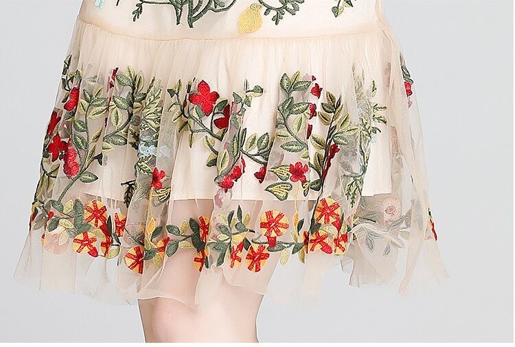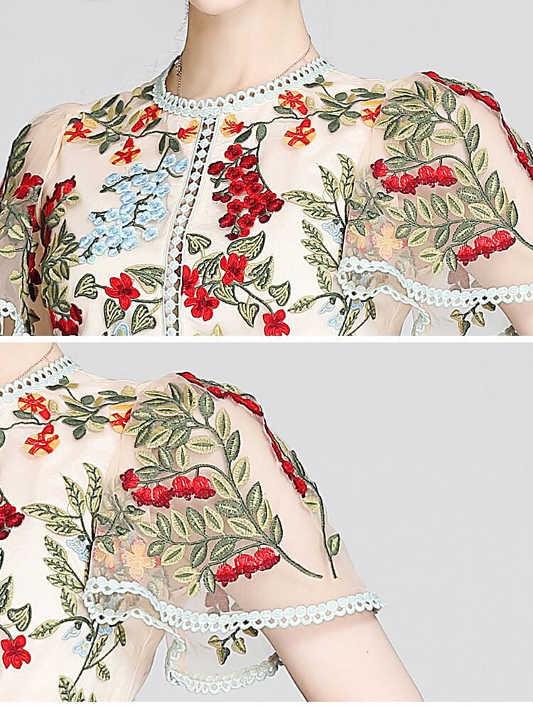 Pinkoz ランウェイ サマードレス レディース フレアスリーブ 花柄 刺繍 メッシュ 中空ミディドレス ピンク 夏物