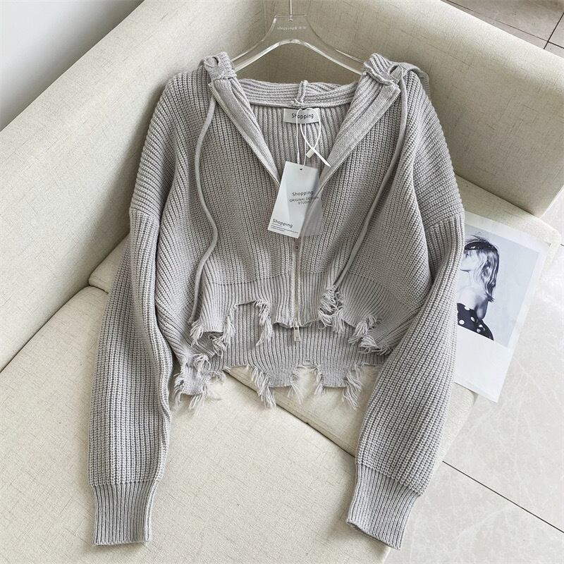 Pinkoz デザイナースタイリッシュな有名人韓国ファッションニットパーカージッパーグレーカーディガン電話ショートトップスハイストリートリサトップ ピンク