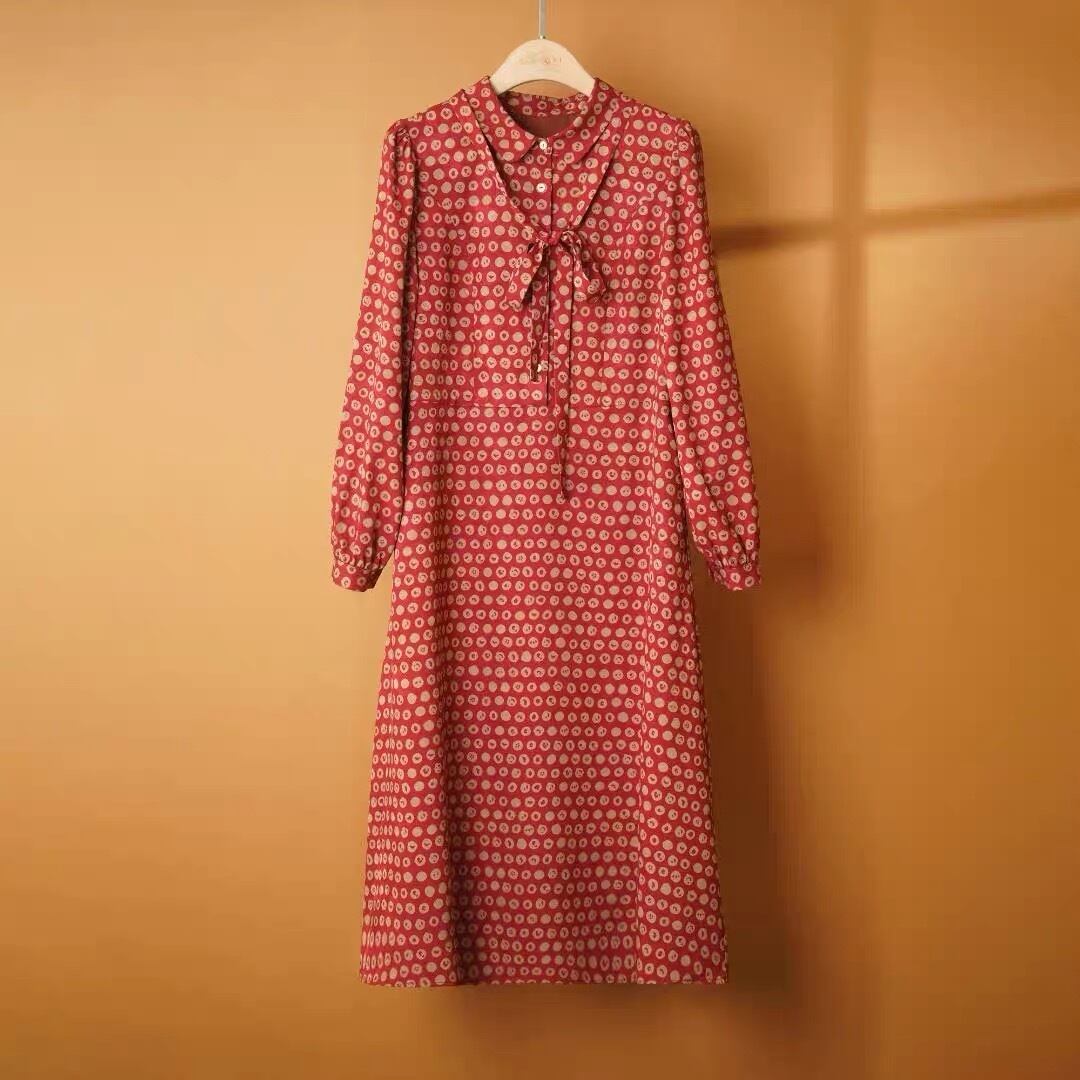 Pinkoz 女性赤水玉ミディドレスシングルブレストターンダウン襟レースアップサッシ A ラインのエレガントなドレスビッグサイズ 3xl traf ピンク レッド Aライン