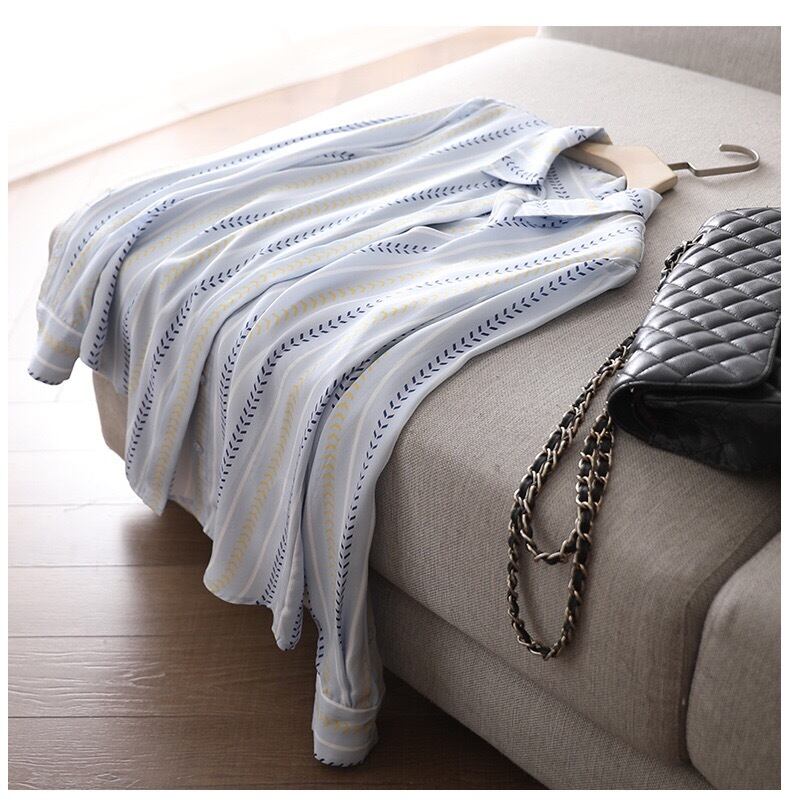 Pinkoz ランウェイ デザイナー スタイリッシュ ライトブルー レディース ブラウス エレガント リーフ フローラル プリント ターンダウン カラー シフォン フルスリーブ OL トップス ピンク 花柄