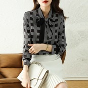 Pinkoz 女性ブラウス黒淡い弓襟フルスリーブカジュアルオフィスレディ女性トップス作業服 blusa feminina ファッション traf ピンク ブラック リボン フェミニン 会社 学校 通勤や通学にも
