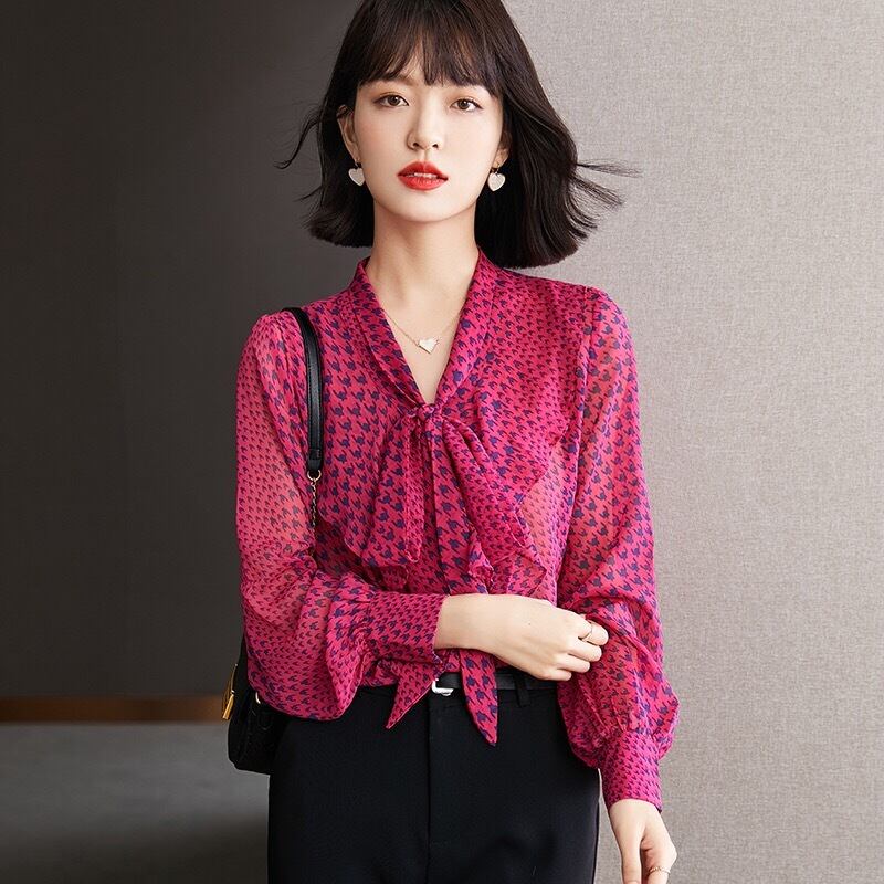 Pinkoz ヴィンテージ デザイナー レディース シャツ シフォン 赤 リボン 襟 レースアップ エレガント かわいい 甘い ブラウス OL シック 作業服 女性 シック ピンク レッド 大人ガーリー スウィート キュート カジュアル ビンテージ