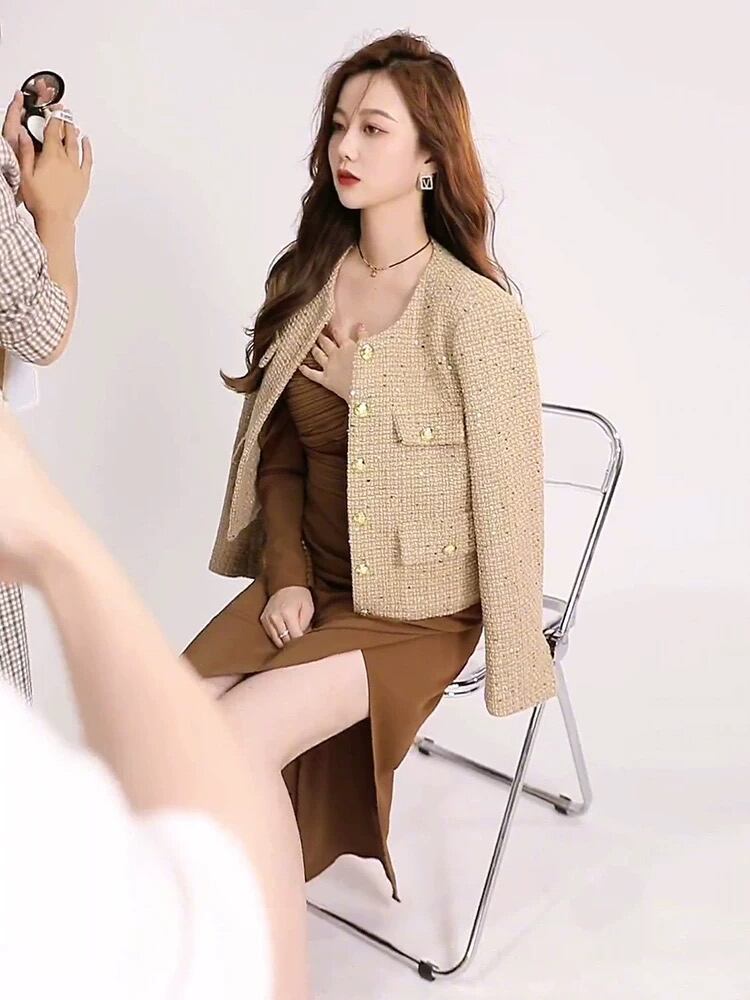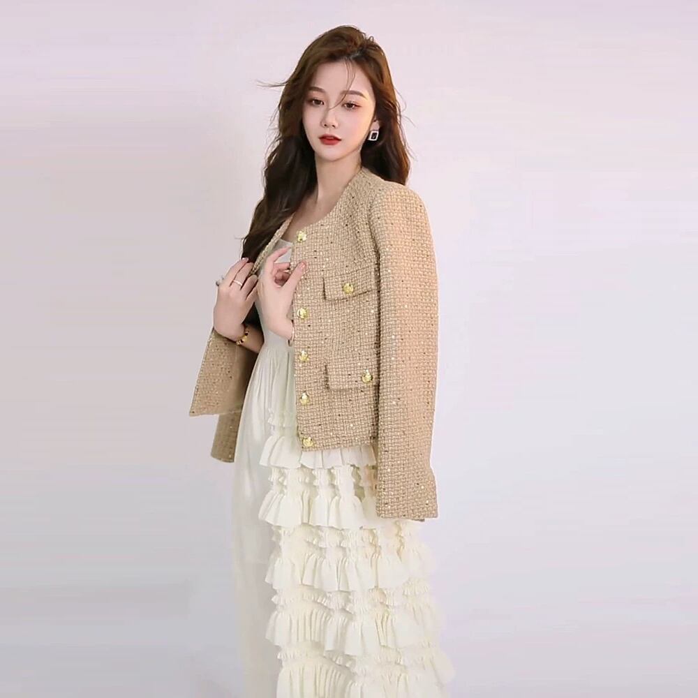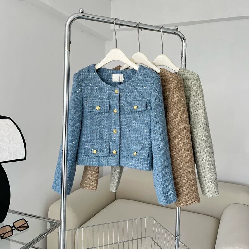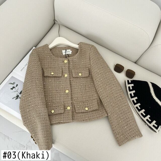 Pinkoz フレンチ コート レディース 秋/冬 ボタン ツイード ジャケット 長袖 ポケット コート トップス ロング ピンク オータム 秋物 ウィンター 冬物