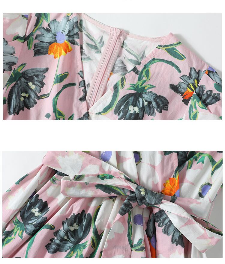Pinkoz セレブスタイルフラワープリントファッション新サマードレス半袖 v ネックサッシラップドレス女性パーティードレス ショート ピンク ハーフスリーブ 夏物 Vネック フラワーデザイン