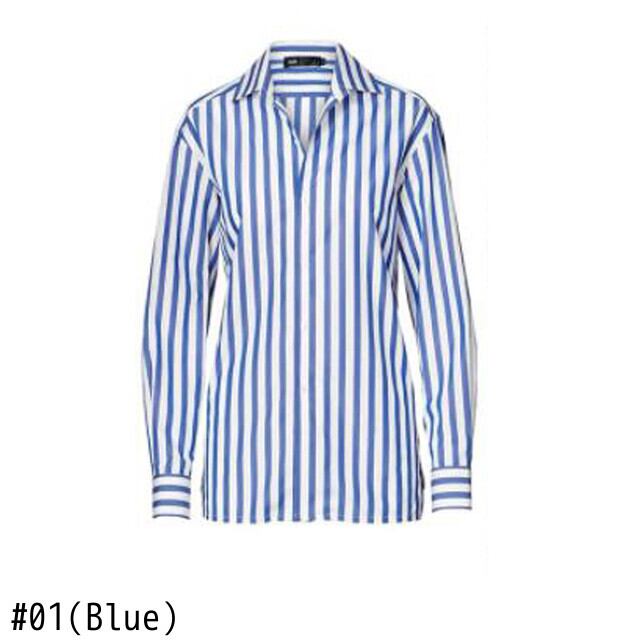 Pinkoz 春秋ブルー ストライプ ブラウス ミーガン スタイル有名人シングル ブレスト シャツ OL ブラウス ピンク スプリング 春物 オータム 秋物