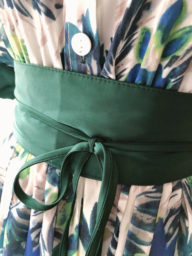 Pinkoz 女性花柄ドレス夏シャツ スタイル ホワイト グリーン フラワー プリーツ ロング カジュアル セクシー オフィス ワーク ビーチ自由奔放に生きる プラス サイズ ピンク 大きめサイズ サマー 夏物 フラワーデザイン 会社 学校 通勤や通学にも