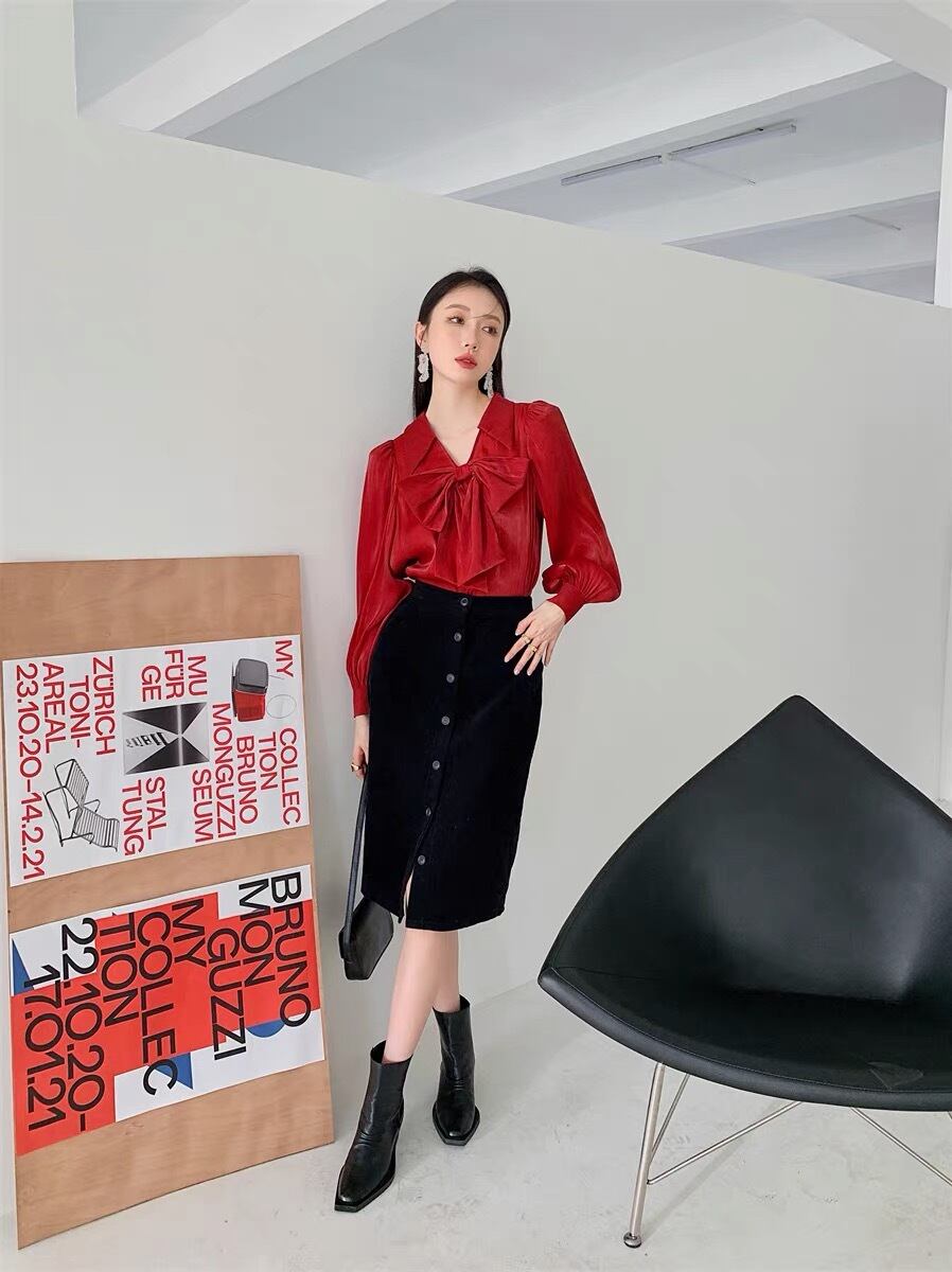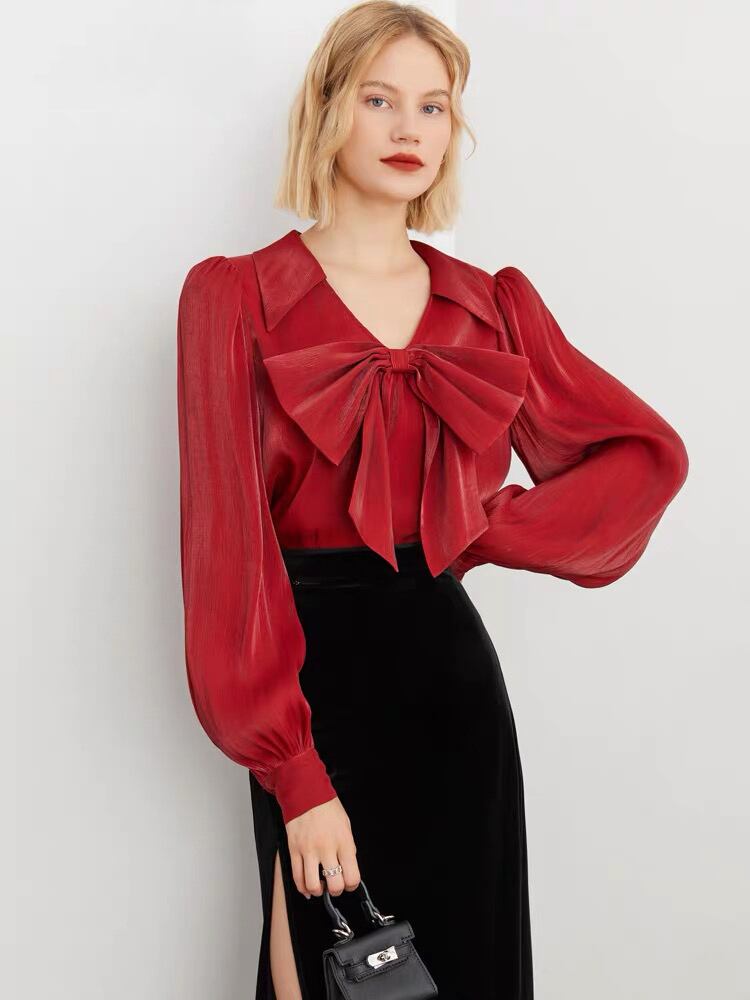 Pinkoz 滑走路デザイナー ビクトリア朝のスクエア カラー ランタン スリーブ赤シフォン女性ブラウス蝶ネクタイ春パーティー エレガント トップス ヴィンテージ ピンク レッド ランタンスリーブ リボン スプリング 春物 スクウェア ビンテージ