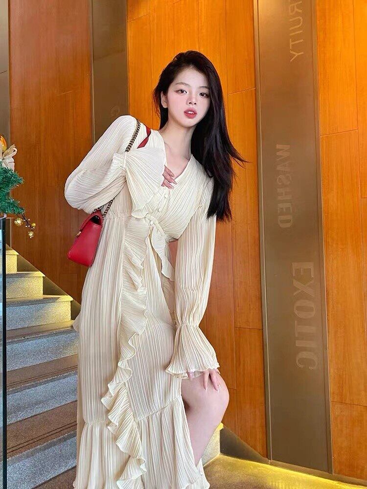 Pinkoz デザイナー V ネック非対称プリーツ ロング ドレス ルーズ パーティー ナイト自由奔放に生きる赤いドレス妖精マキシ ローブ デ mujer vestidos traf ピンク レッド Vネック