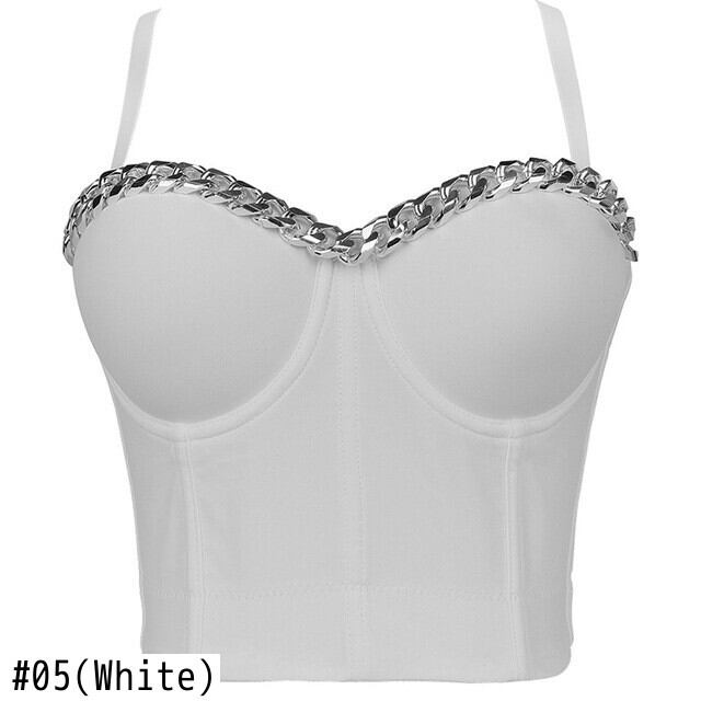 Pinkoz ランウェイ デザイナー セレブリティ スタイリッシュ セクシー クロップド トップス アウター メタル リンク レディ タンク パーティー ナイト キャミソール ブラック ポレラス ムジャー ピンク