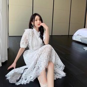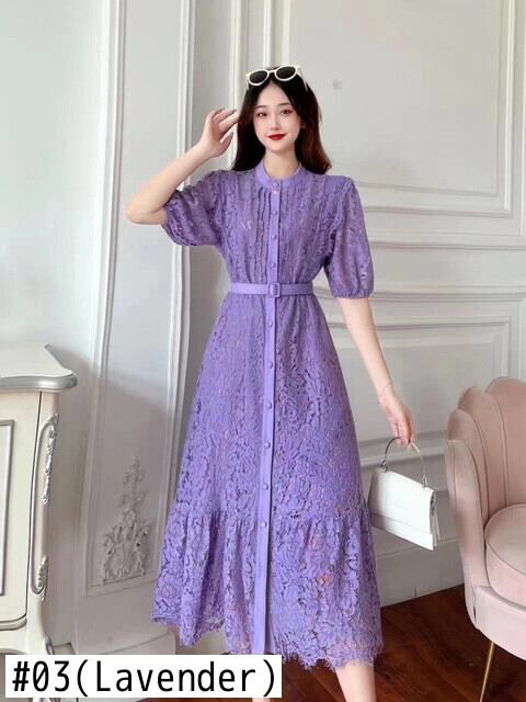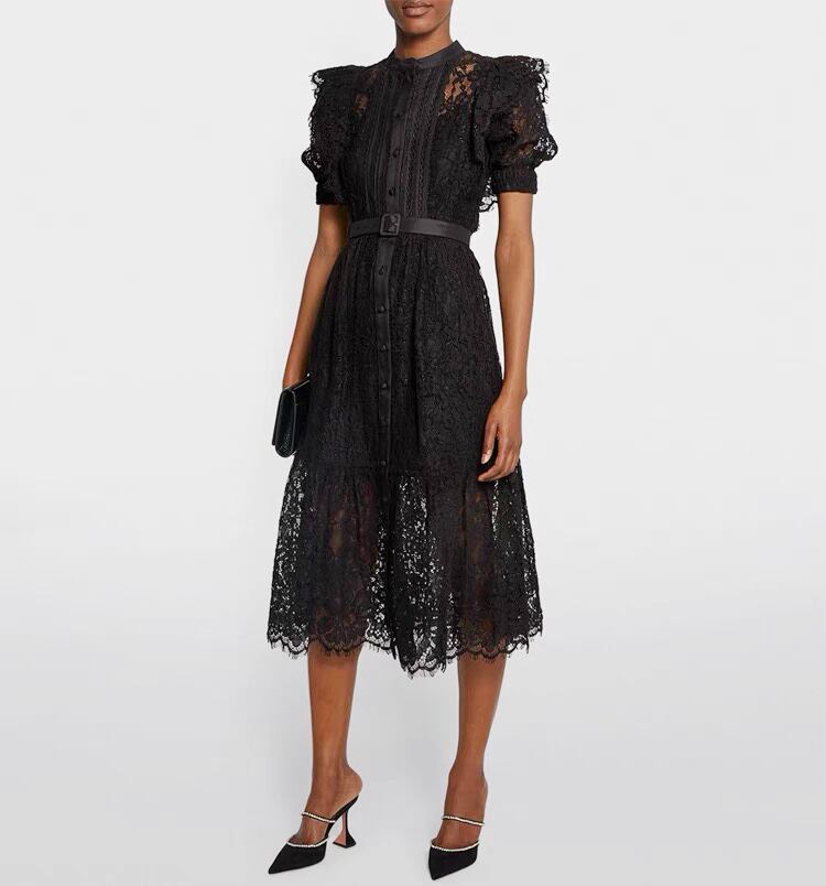 Pinkoz エレガントなブラック レース ミディ ドレス シングル ブレスト中空アウト パーティー半袖サマー ドレス ベルト付きローブ ロング ファム ét ショート ピンク ハーフスリーブ 夏物 ハーネス フェミニン