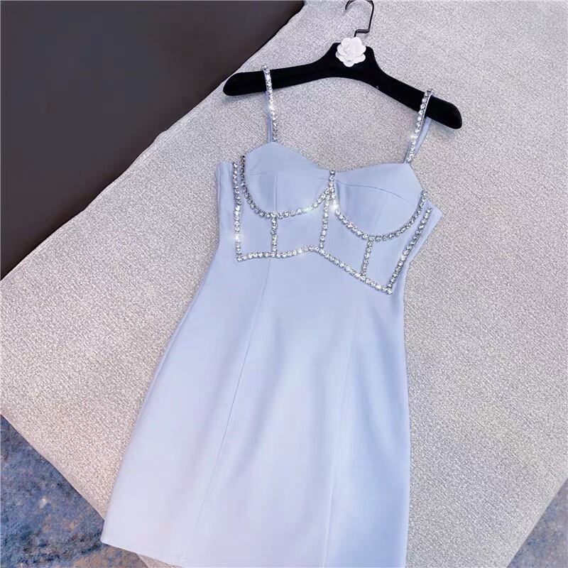 Pinkoz 高級デザイナー クリスタル分割ミニ ドレス パーティー誕生日かわいいスパゲッティ ストラップ弓夏ディナー ドレス ファム ローブ za ピンク リボン 大人ガーリー スウィート キュート カジュアル サマー 夏物 フェミニン