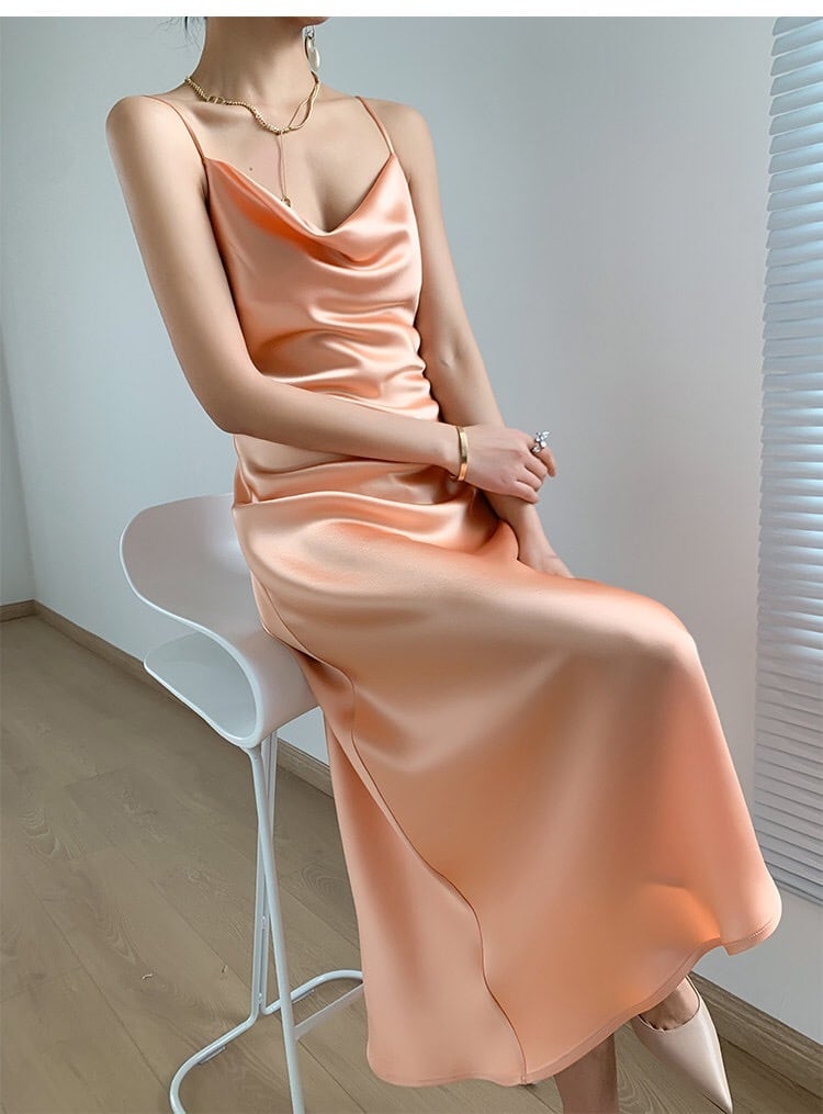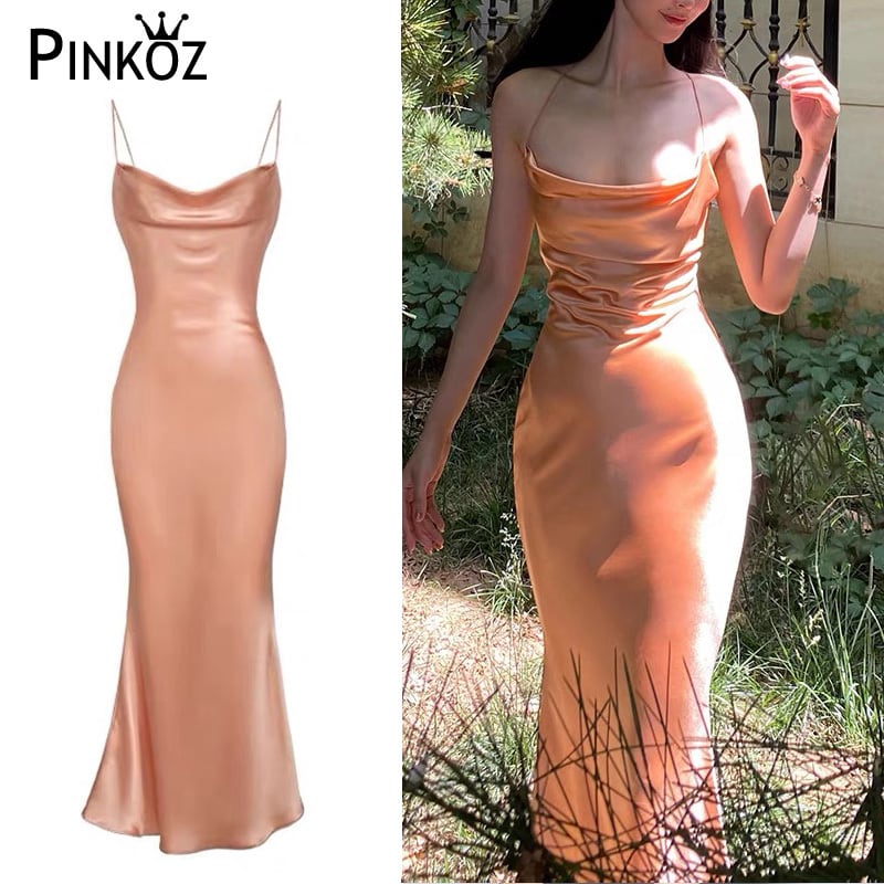 Pinkoz 夏ローズ花柄ボヘミアン パーティー ドレス女性のスパゲッティ ストラップ背中の開いたセクシーなサテン オレンジ ビーチ Elbise ローブ セクシー ピンク サマー 夏物