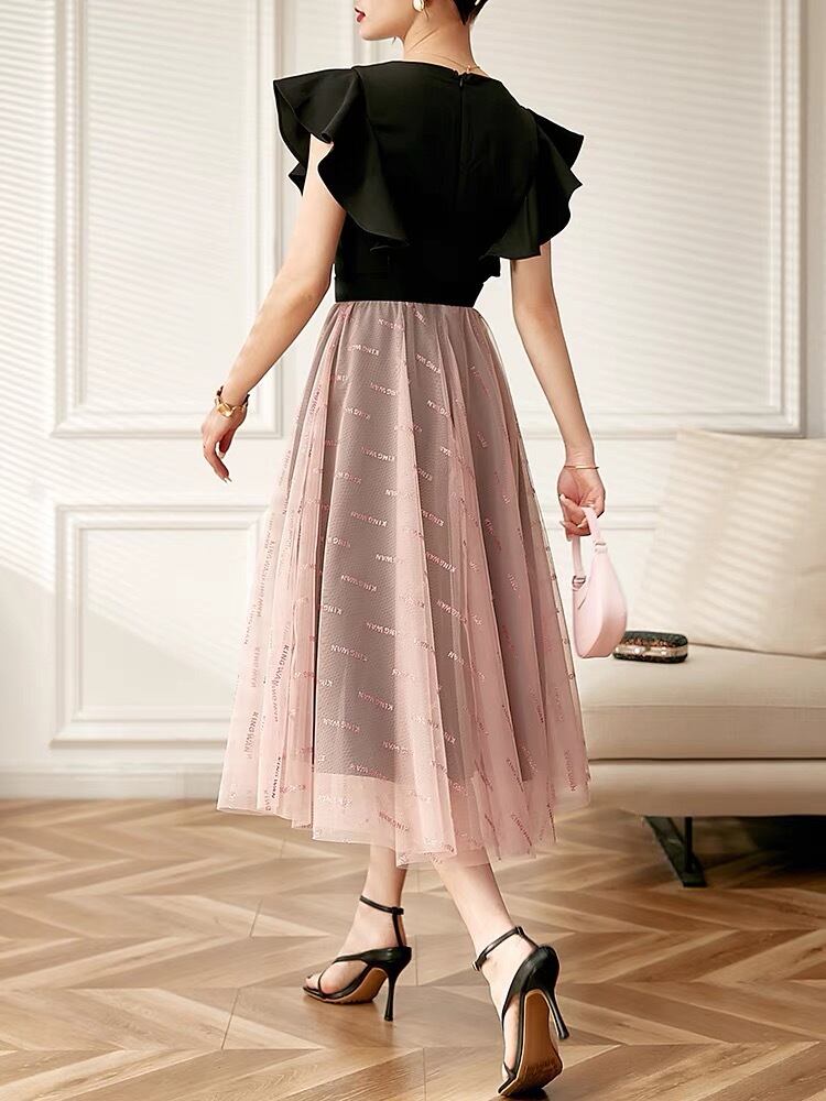 Pinkoz 女性春サテンドレスフェスタエンパイアウエストカクテルパーティーローブメッシュ A ライン Vestidos ピンク スプリング 春物 Aライン