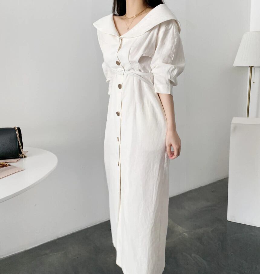 Pinkoz 女性ヴィンテージ黒ミディ ドレス シングル ブレスト ピーターパン襟秋エレガントなパフ スリーブ パーティー ナイト ローブ ベルト付き ピンク ブラック オータム 秋物 ハーネス ビンテージ