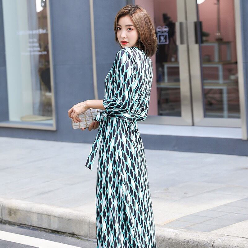 Pinkoz 滑走路デザイナー ファッション v ネック格子縞の女性ドレス レース アップ ラップ スカート半袖花柄オフィス レディ ドレス traf ピンク ハーフスリーブ Vネック レースアップ 会社 学校 通勤や通学にも
