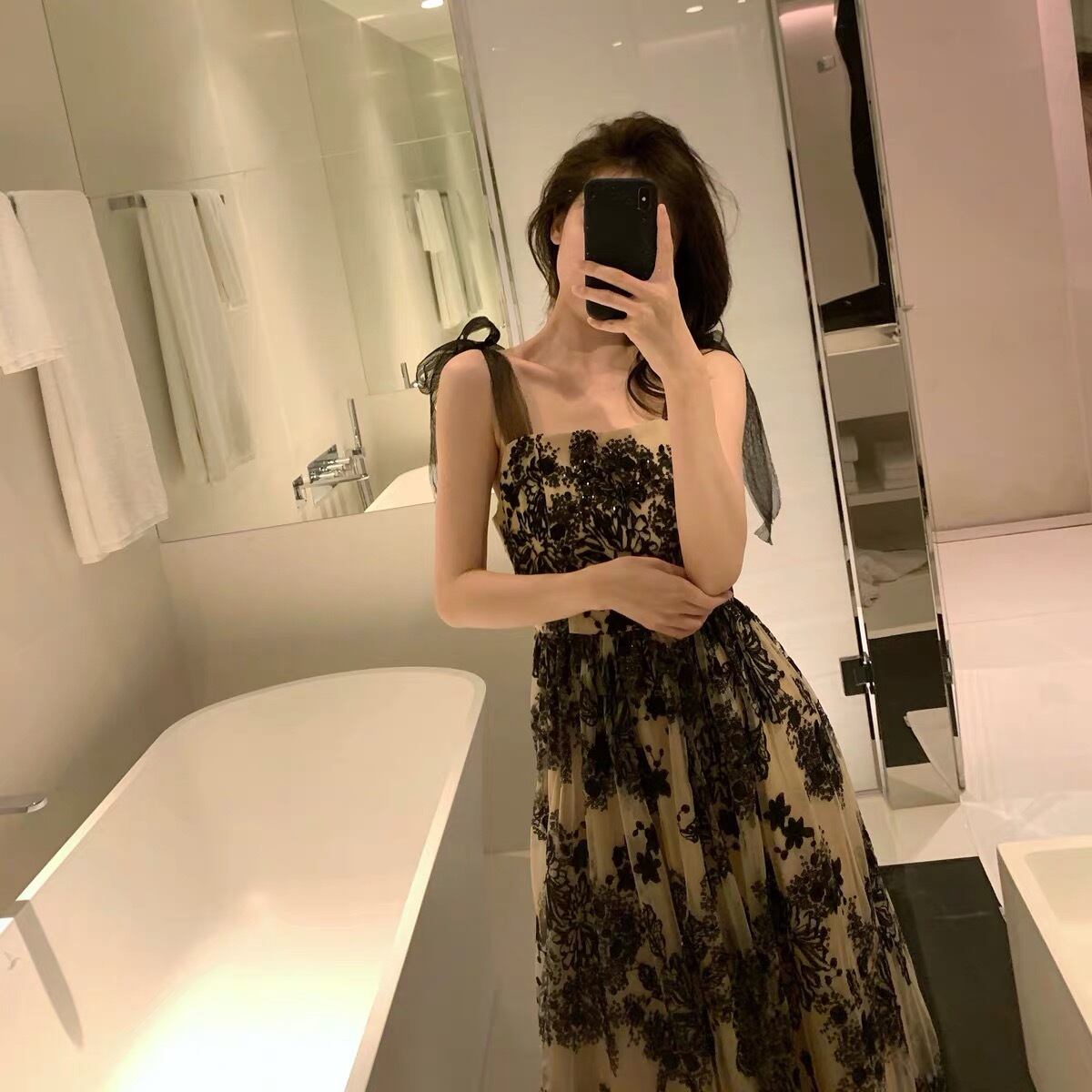 Pinkoz スパンコール刺繍黒サスペンダードレス夏レトロ気質ヘップバーンスタイルパーティードレス Vestidos ピンク レッド ブラック サマー 夏物
