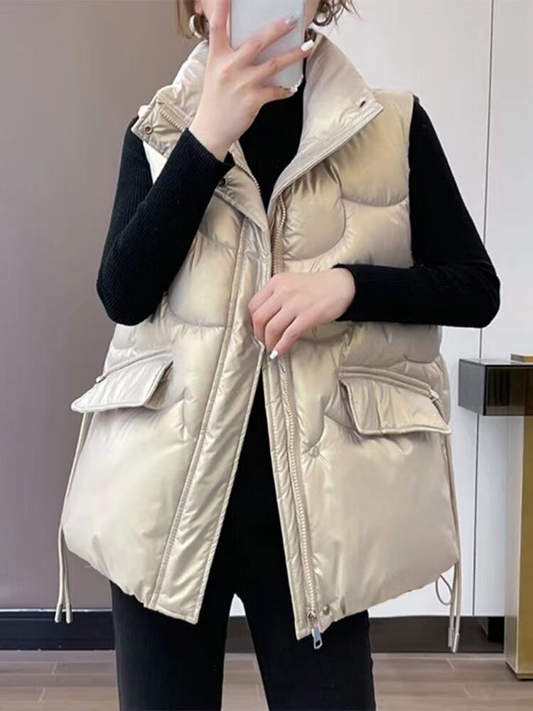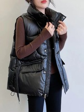 Pinkoz ファッション秋冬厚い保温パーカーベストシックなハイストリート服白ファムジャケットノースリーブトップス za ピンク ホワイト ウィンター 冬物 フェミニン