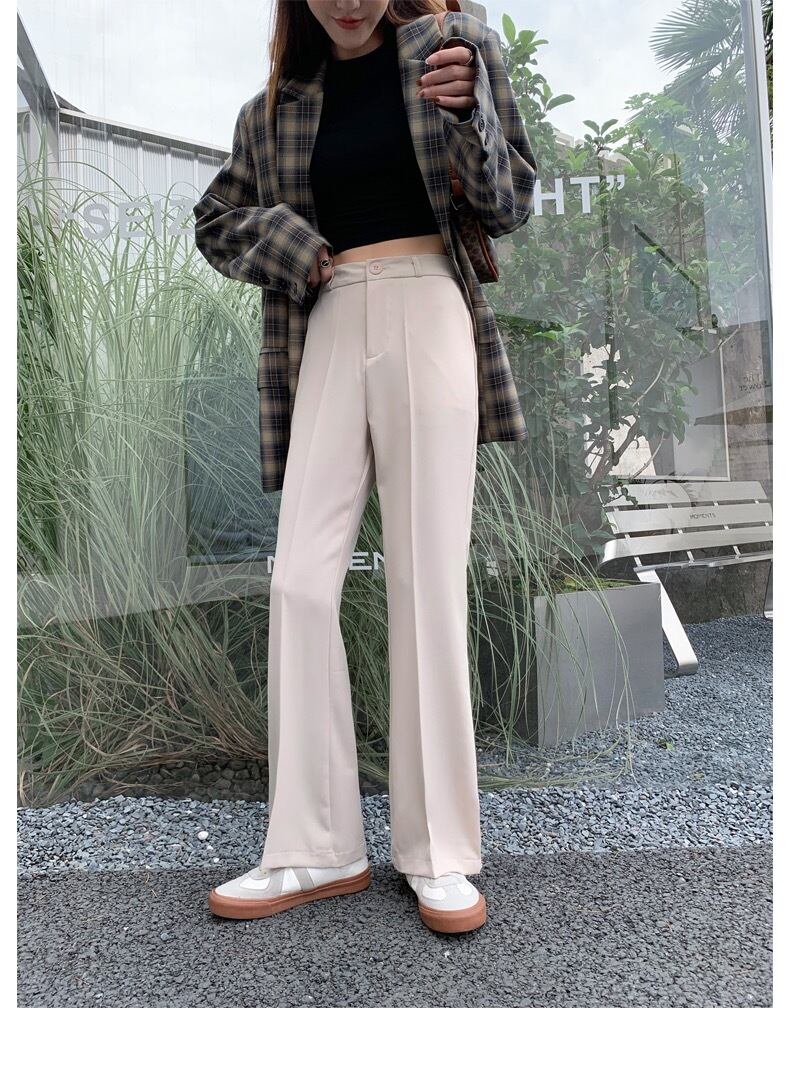 Pinkoz エレガントな白ロング パンツ カジュアル オフィス レディー分割デザイナー フレンチ ベージュ ズボン ファム ファッション服デ mujer za ピンク ホワイト フェミニン 会社 学校 通勤や通学にも