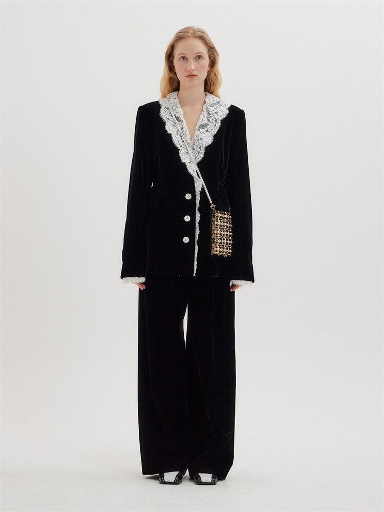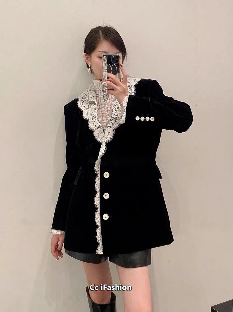 Pinkoz レディース ブラック パッチワーク レース ピーターパン カラー セレブ スタイリッシュ ブレザー パーティー ナイト ファッション トップス ジャケット 衣装 エレガント OL ピンク