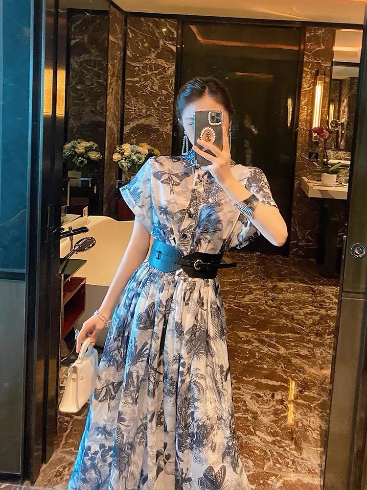 Pinkoz desigenr ターン ダウン襟夏春ミディ ドレス シングル ブレスト水墨画ヴィンテージ イングランド スタイル ドレス緩い ピンク スプリング 春物 サマー 夏物 ビンテージ ヨーロピアン
