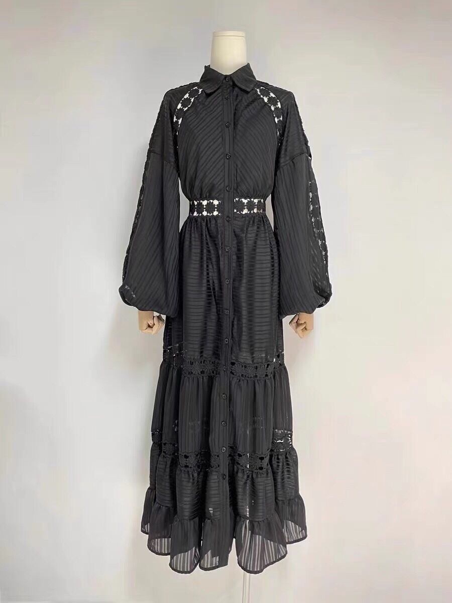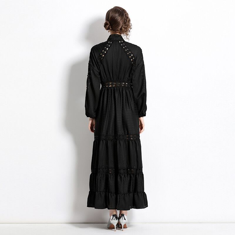 Pinkoz デザイナー黒レース マキシ ドレス中空 oput シングル ブレスト ロング パーティー ナイト パッチワーク レース ローブ demujer 夏シック ピンク ブラック サマー 夏物