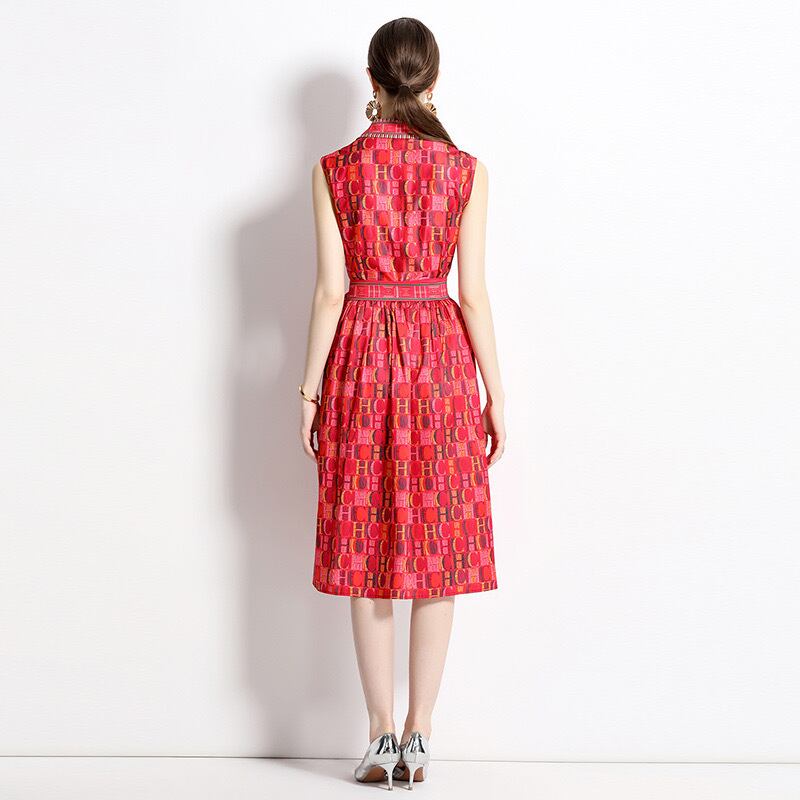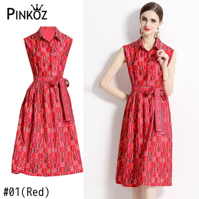 Pinkoz 赤文字ミディ A ライン ドレス タンク ノースリーブ夏春エレガントヴィンテージ vestidos ファム ローブ デ mujer 服 za ピンク レッド スプリング 春物 サマー 夏物 Aライン フェミニン ビンテージ
