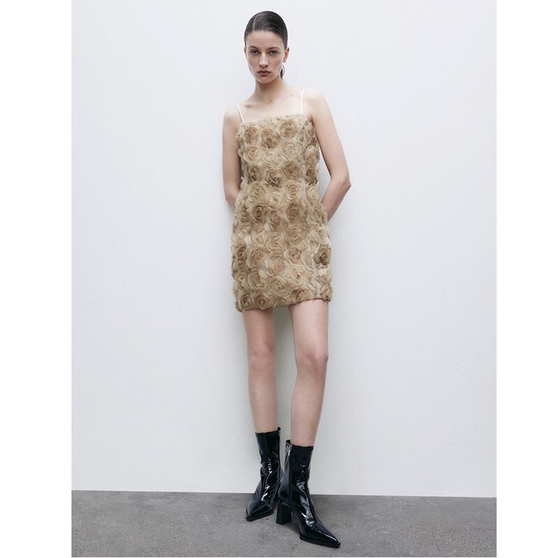 Pinkoz カーキ ミニ デザイナー ドレス キャラメル ローズ スパゲッティ ストラップ ショート ぬるぬるした夏夜ドレス キャミソール vestidos シックビーチ traf ピンク サマー 夏物