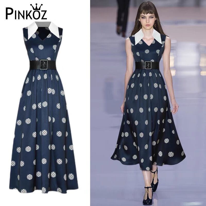 Pinkoz ヴィンテージ イングランド スタイル セレブ ミディ ドレス ポルカ ドット プリント ターン ダウン カラー エレガントネイビー ブルー パーティー ドレス with ベルト traf ピンク ハーネス ビンテージ ヨーロピアン