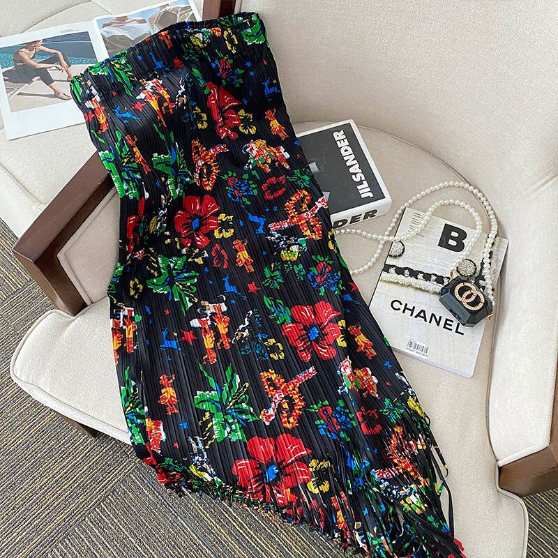 Pinkoz 春夏花プリント ハイウエスト自由奔放生きるプリーツ ロング スカート服ファッション tel デザイナー スカート traf ハイウェスト ピンク スプリング 春物 サマー 夏物 花柄