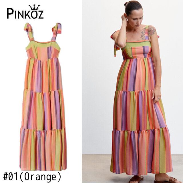 Pinkoz 滑走路デザイナー マキシ ドレス レース アップ カラフル黄色オレンジ色ストリップ プリント ハイウエスト夏ナイト ローブ デ mujer vestidos ハイウェスト ピンク サマー 夏物 レースアップ