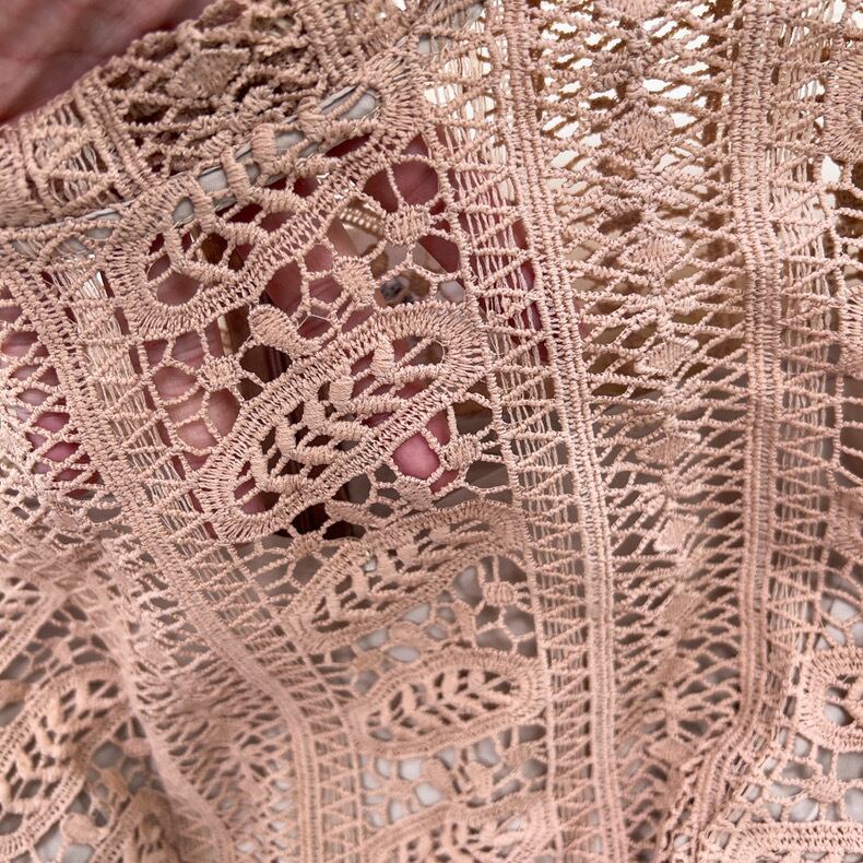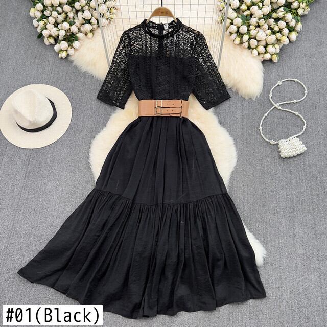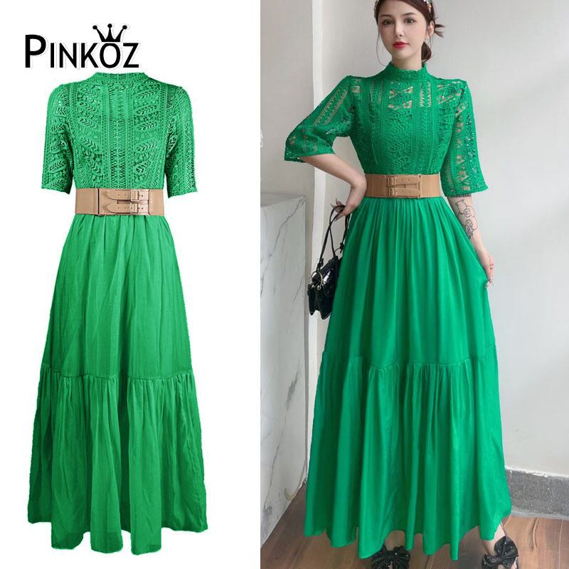 Pinkoz レースマキシドレス有名人スタイリッシュグリーンパッチワーク中空アウト A ラインパーティーエレガントドレス vestidos とベルト traf ピンク ハーネス Aライン