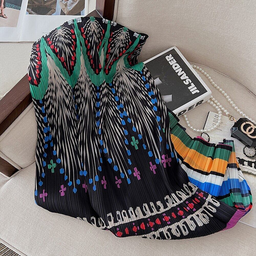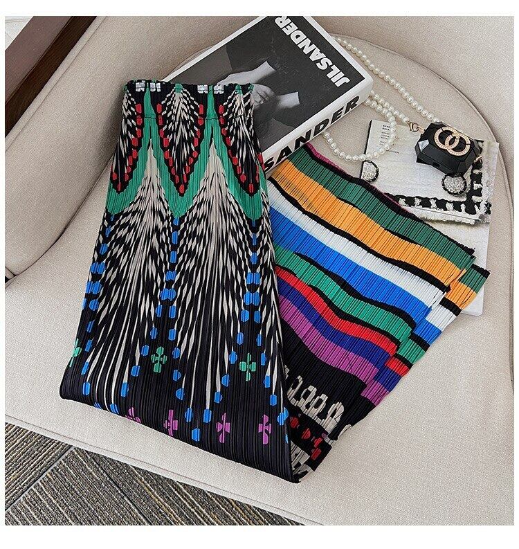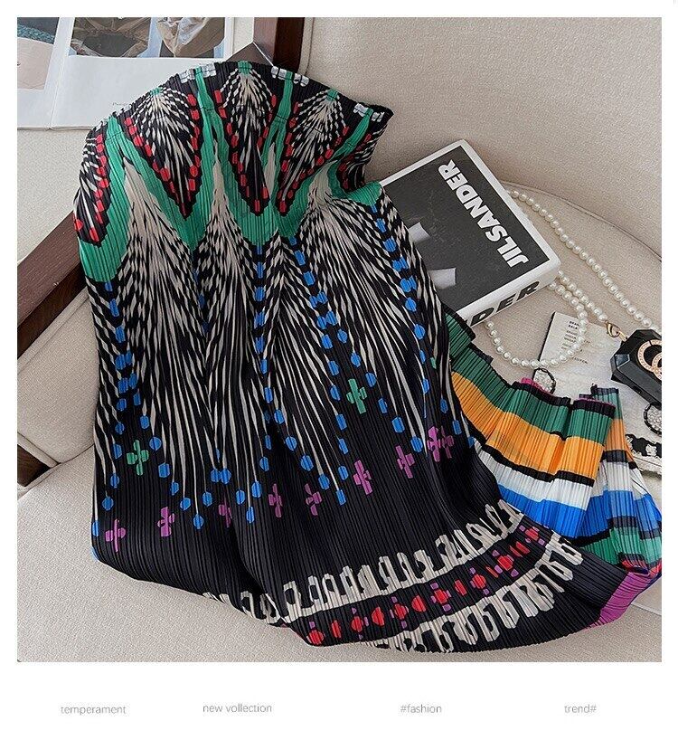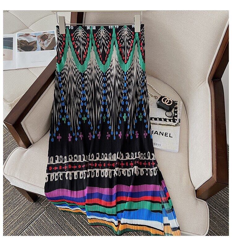 Pinkoz ファッション衣類自由奔放生きるプリントハイウエスト黒ミディスカートプリーツナイトエレガントロングスカート jupes юбка шорты traf ハイウェスト ピンク ブラック