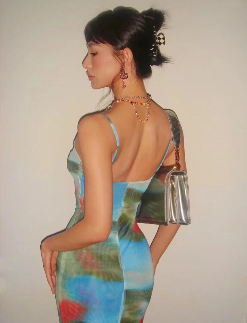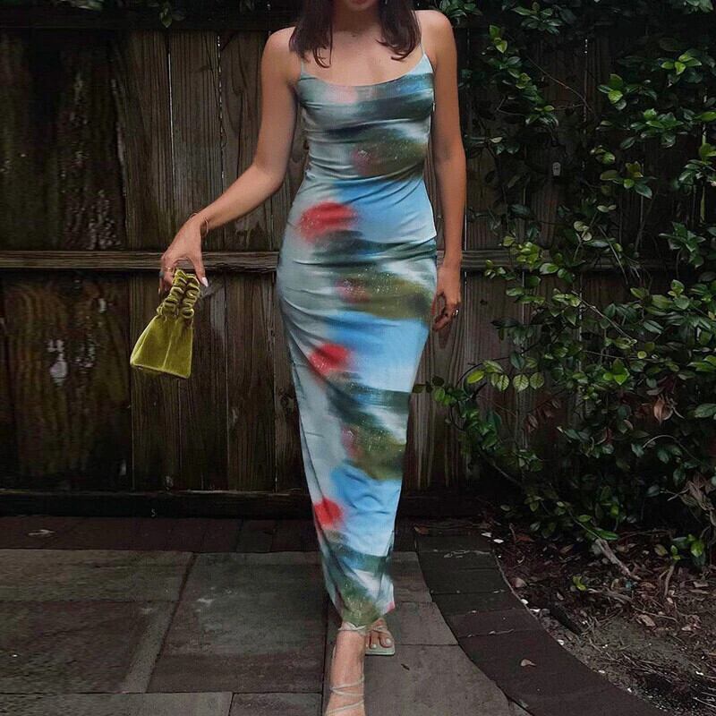 Pinkoz 夏新ブルー塗装パターンプリント鉛筆マキシドレス休日ビーチシック vestidos ファム服 z ピンク サマー 夏物 フェミニン