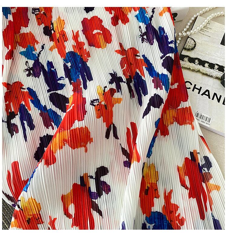 Pinkoz プリーツミディスカート夏春花プリントファッション服ファムスカート段 faldas largas パラ mujer モーダ ピンク スプリング 春物 サマー 夏物 フェミニン フラワーデザイン
