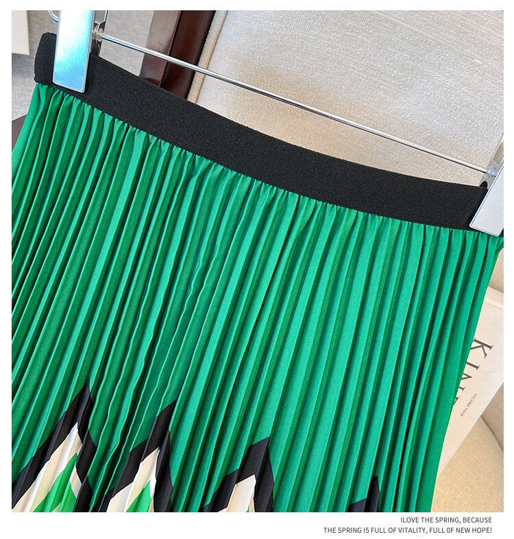 Pinkoz 春夏 伸縮性 待ちプリーツ チェック柄 プリント グリーン 夜会 作業服 ミディスカート ヴィンテージスカート トラフ ピンク エラスティック スプリング 春物 サマー 夏物 ビンテージ