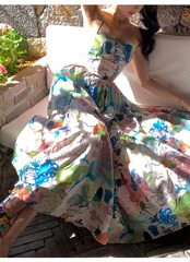 Pinkoz 滑走路デザイナーブルー花柄プリントスパガスストラップサマーパーティーマキシドレスパッチワーク traf ロングドレスキャミソールナイトローブ ピンク 夏物