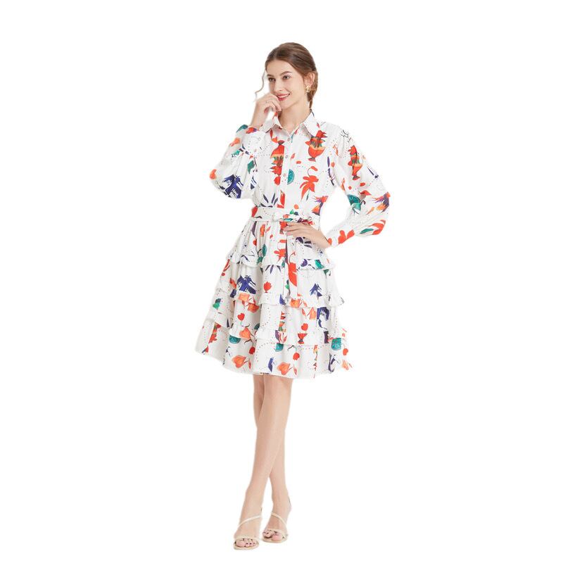 Pinkoz 滑走路デザイナー シングルブレスト フリル カスケード レイヤード フルスリーブ ドレス ホリデー エレガント プレーリー シック ベスト トラフ ピンク レッド ラッフル