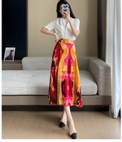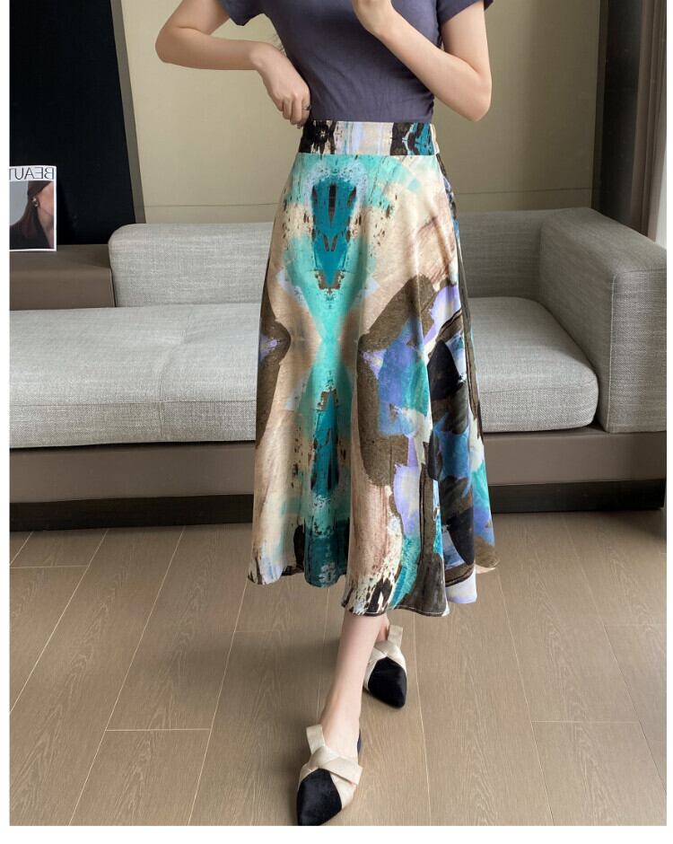 Pinkoz デザイナーレッドプリントハイウエストエレガント A ラインシフォンミディスカート夏オフィスレディベーシックスタイリッシュファッションスカートヴィンテージ ハイウェスト ピンク サマー 夏物 Aライン ビンテージ 会社 学校 通勤や通学にも