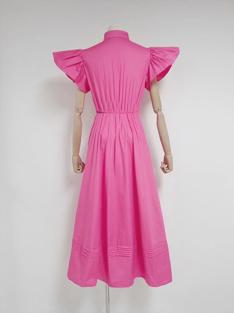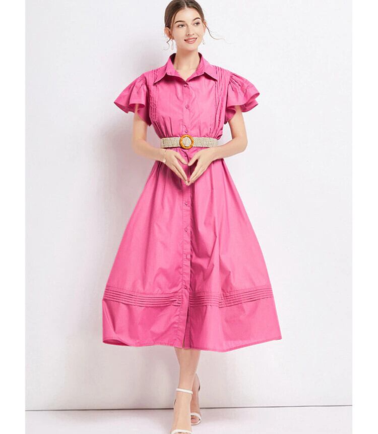 Pinkoz デザイナースタイリッシュ赤シングルブレストターンダウン襟パッチワークミディドレスベルトエレガントローブデムジェ traf ピンク レッド ハーネス