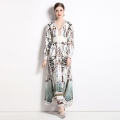 Pinkoz v ネック夏春ホリデー花柄プリントドレスサッシ自由奔放生きるビーチファムマキシカジュアルドレスvestidos ピンク スプリング 春物 サマー 夏物 Vネック フェミニン