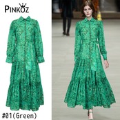 Pinkoz 滑走路デザイナーマキシドレス金属ボタンシングルブレスト高級ランタンスリーブハイウエストパーティーエレガントヴィンテージ Vestidos z ハイウェスト ピンク ビンテージ