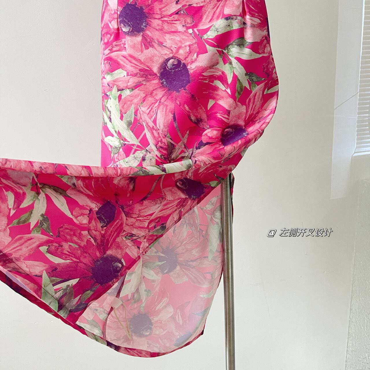PinkozSummer キャミソールミディドレススパゲッティストラップ赤花柄プリントぬるぬる夜セクシードレスローブデムジェ traf ファッション ピンク レッド サマー 夏物