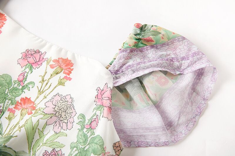 Pinkoz 花柄プリントスクエア襟ヴィンテージサマーシフォンマキシドレスホリデービーチボヘミアンドレスvestidos traf ピンク 夏物 スクウェア ビンテージ
