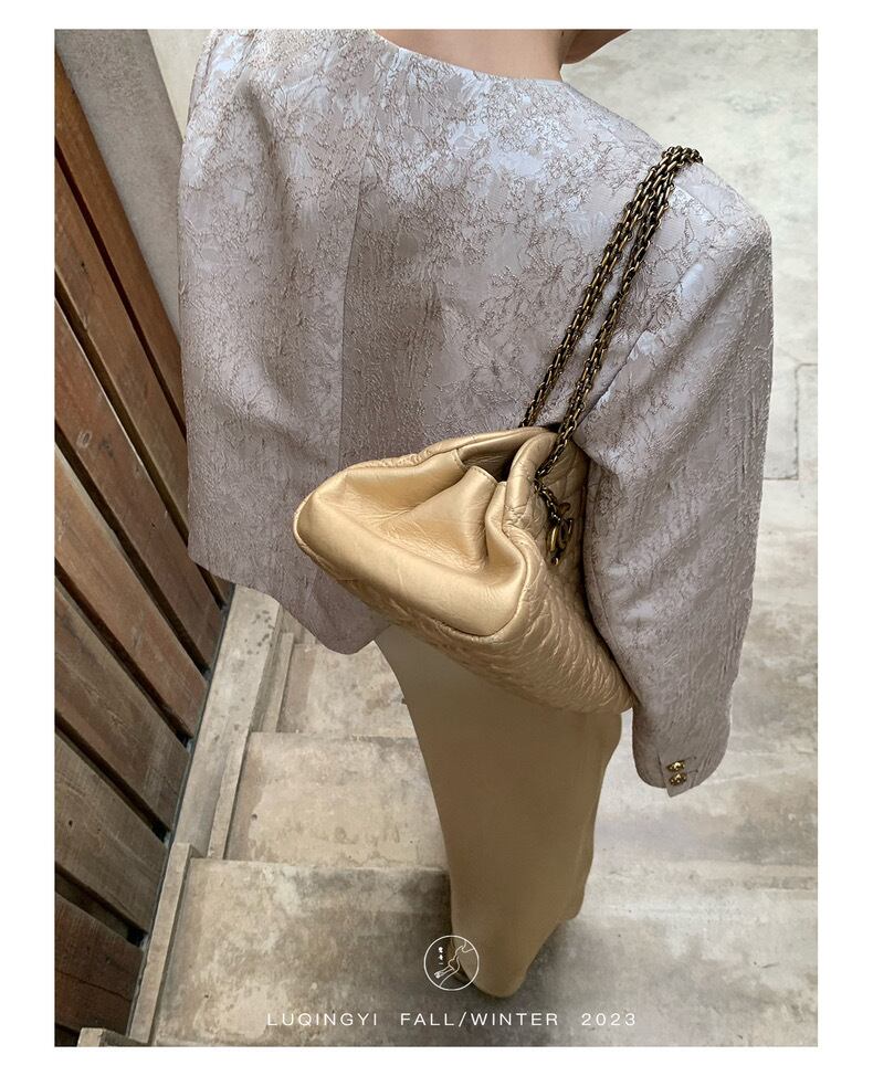 Pinkoz 春秋ネック長袖ショートジャケットジャカードシルバーエレガントオフィスレディヴィンテージフランス服トップス ロング ピンク スプリング 春物 オータム 秋物 銀 ビンテージ 会社 学校 通勤や通学にも