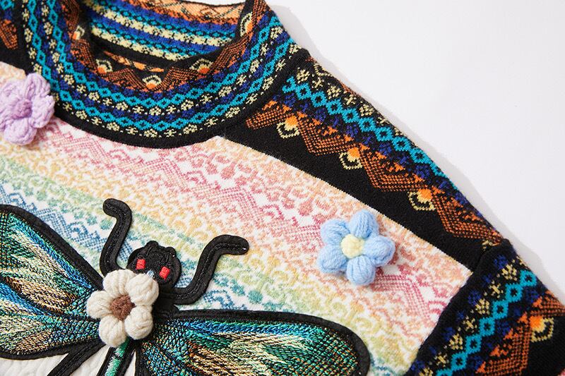 Pinkoz 秋冬セーター草原シックトンボ花刺繍高級ニットカジュアルエレガント服カーディガン z ピンク オータム 秋物 ウィンター 冬物 フラワーデザイン