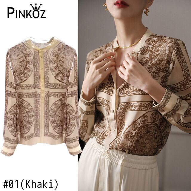 Pinkoz 滑走路デザイナースタイリッシュサテン o ネック長袖プルオーバー春秋ブラウスファッションヴィンテージフレンチトップス camisas e traf ロング ピンク スプリング 春物 オータム 秋物 Oネック ビンテージ