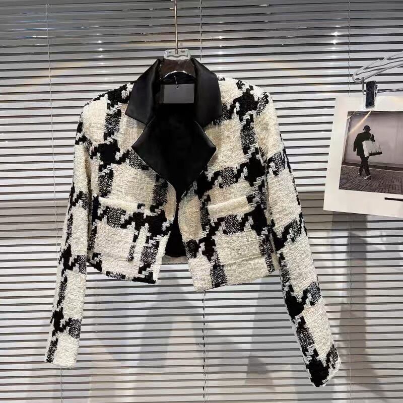 Pinkoz ファッション衣類チェック柄ツイードショートオーバーコートシングルブレスト秋冬ジャケット y2k スタイリッシュ韓国服ヴィンテージ ピンク ウィンター 冬物 ビンテージ